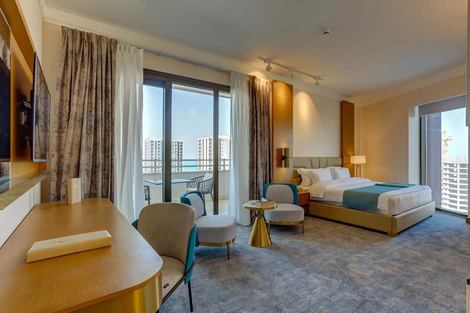 امکانات: فضای بزرگ، اتاق خواب و نشیمن مجزا، بالکن خصوصی با چشمانداز خلیج فارس، تلویزیون بزرگ، اینترنت پرسرعت، سرویس VIP، امکانات پذیرایی ویژه.