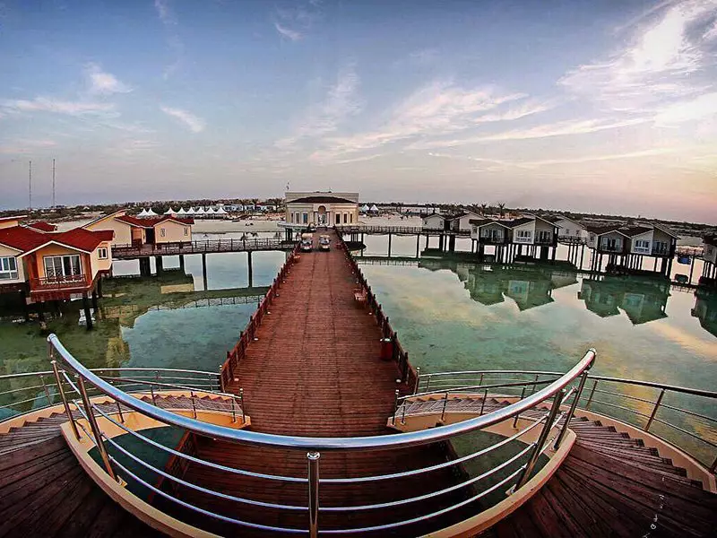 بخش ساحلی: این بخش شامل ویلاها و اتاقهایی است که در کنار ساحل و روی آب قرار دارند. اتاقها به شکل بته جقه طراحی شدهاند که یکی از نمادهای هنر ایرانی است.