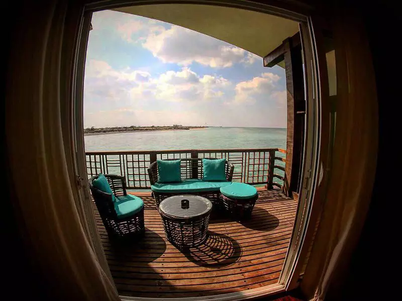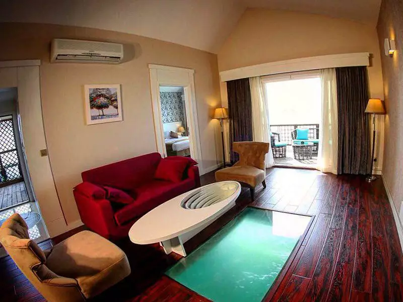 یکی از جذابیتهای بخش ساحلی، کف شیشهای برخی از اتاقهاست که به مهمانان این امکان را میدهد تا از دیدن دنیای زیر آب لذت ببرند.