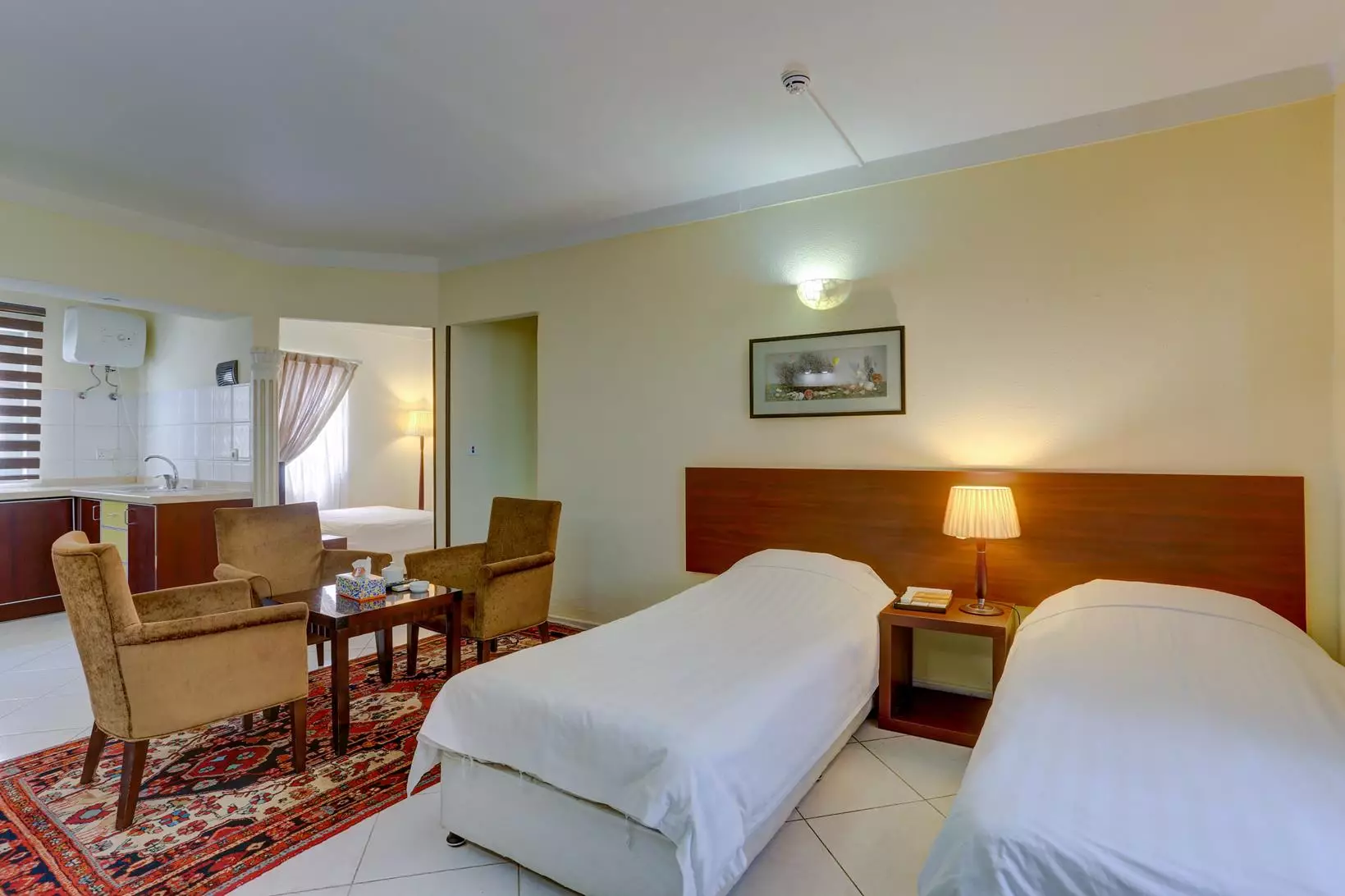 تعداد واحدهای اقامتی: حدود ۲۰۰ واحد در ۵ طبقه، شامل اتاقهای هتلی و سوئیتهای ویلایی