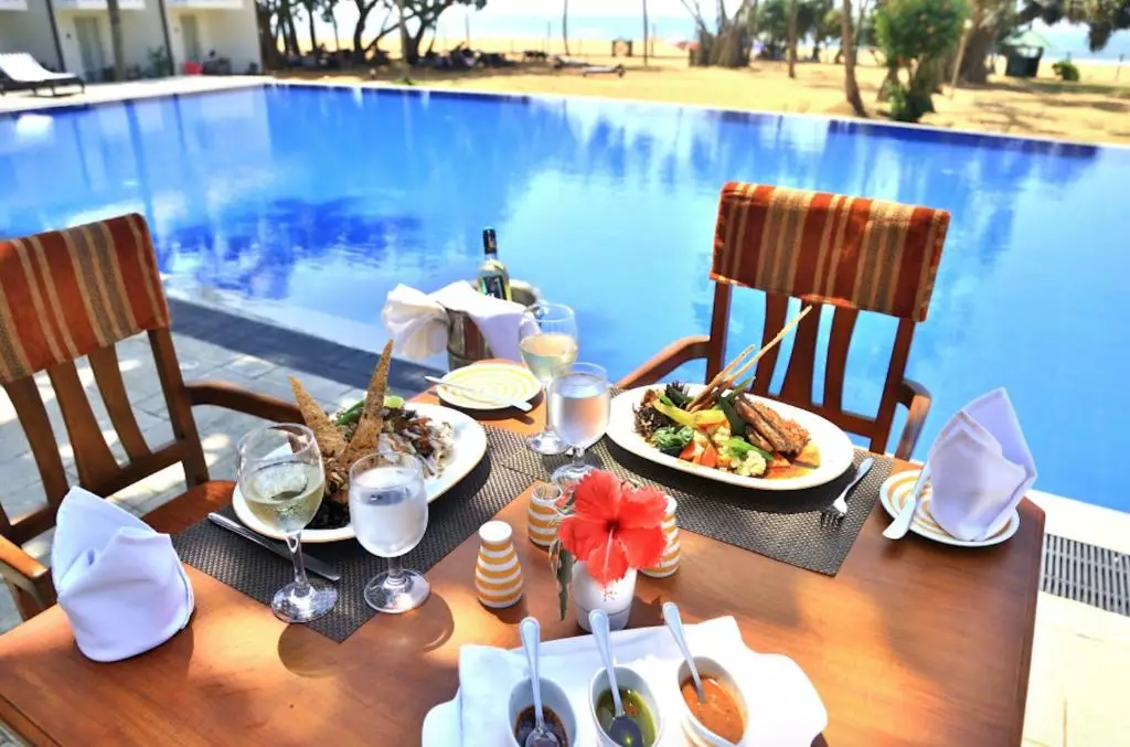 رستوران و کافه ساحلی: این هتل دارای رستورانهای متنوعی است که انواع غذاهای محلی سریلانکایی و بینالمللی را با کیفیت بالا سرو میکنند. کافه ساحلی هتل هم فضایی عالی برای صرف نوشیدنیهای خنک و میانوعدهها فراهم کرده و چشمانداز دریا را به همراه دارد.