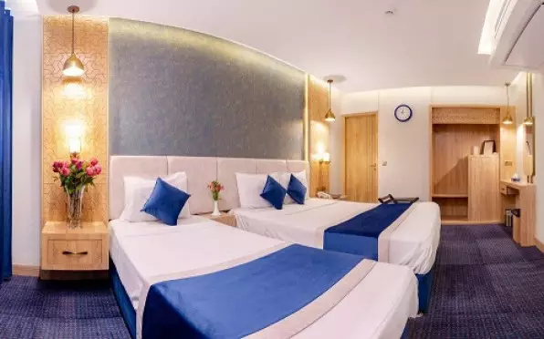 مجهز به تلویزیون، مینیبار، چایساز، سیستم تهویه مطبوع، میز تحریر، حمام اختصاصی و سرویس بهداشتی ایرانی و فرنگی.