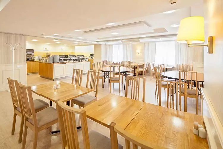 رستوران و صبحانه بوفه: رستوران هتل غذاهای اروپایی و روسی را به صورت بوفه سرو میکند و برای ناهار و شام منوی آلاکارته نیز ارائه میدهد.