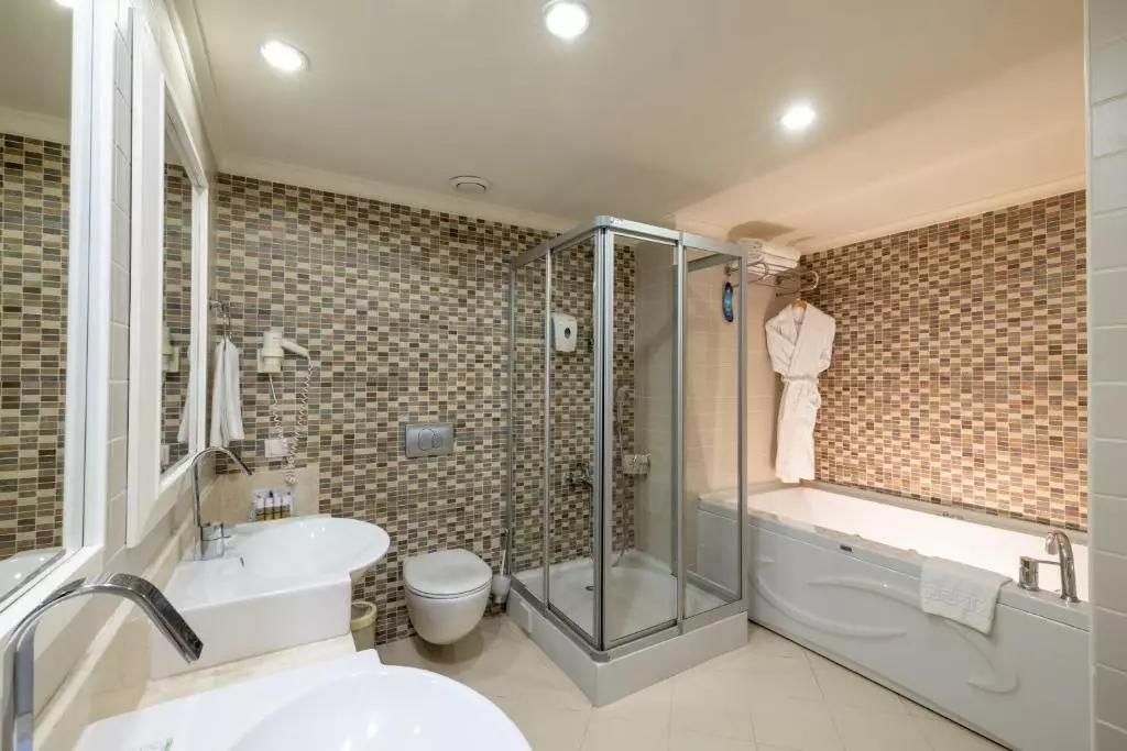 حمام اختصاصی با دوش، لوازم بهداشتی و سشوار