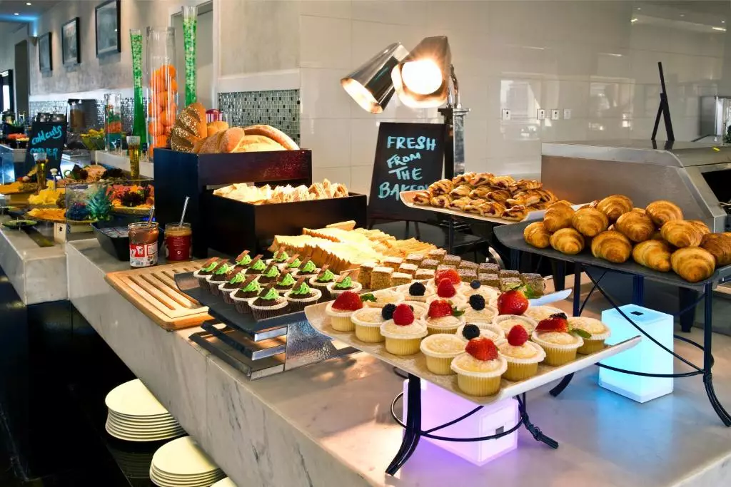 چندین رستوران بینالمللی در هتل فعال هستند که انواع غذاهای عربی، آسیایی و اروپایی سرو میکنند. همچنین یک کافه شیک در لابی و رستوران پانورامیک با چشمانداز دبی برای مهمانان وجود دارد.