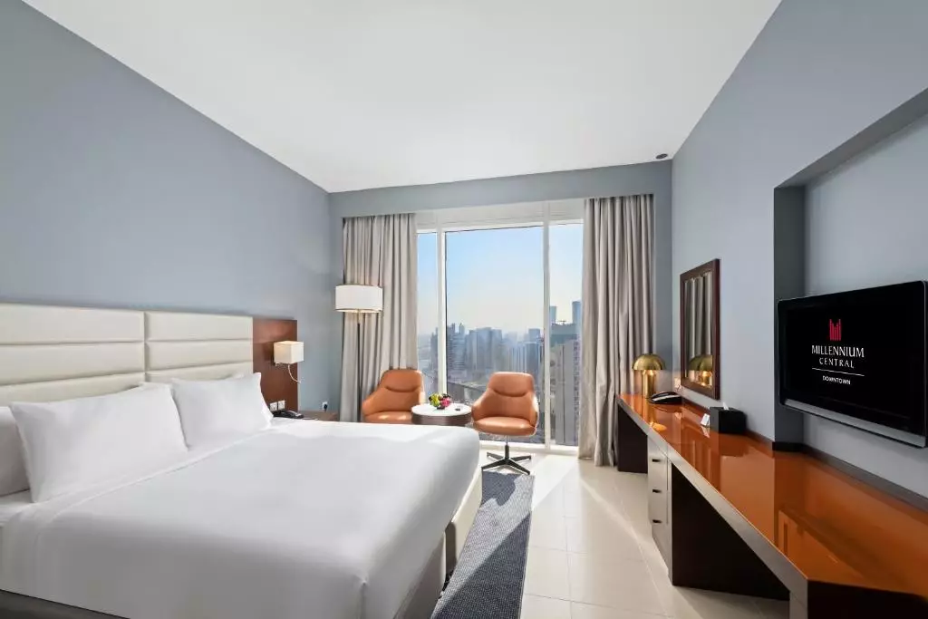 برخی اتاقها چشمانداز فوقالعادهای به برج خلیفه و مرکز شهر دارند.