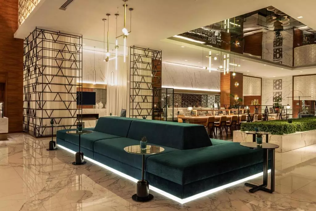 این هتل ۵ ستاره با معماری مدرن و لوکس، فضایی آرام و مجلل برای اقامت مهمانان فراهم کرده است. لابی بزرگ با دکوراسیون شیک و نورپردازی حرفهای، تجربهای دلنشین و راحت برای مسافران ایجاد میکند.