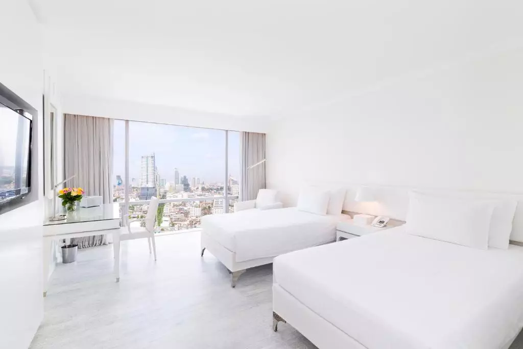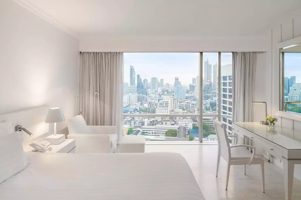 اتاقهای هتل با طراحی سفید و روشن، فضایی مدرن و آرام ایجاد کردهاند. هر اتاق مجهز به تلویزیون صفحهتخت، مینیبار، اینترنت پرسرعت، تهویه مطبوع و حمام لوکس با امکانات کامل است. چشمانداز شهر از پنجرههای بزرگ اتاقها یکی از جذابیتهای اقامت در این هتل محسوب میشود.