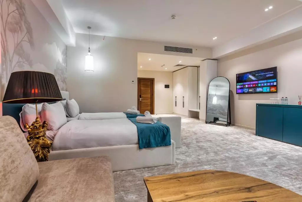 اتاقها و سوئیتهای هتل با دکوراسیون مدرن و امکاناتی شامل اینترنت پرسرعت، تلویزیون صفحه تخت، مینیبار، تهویه مطبوع و سرویس بهداشتی مجهز طراحی شدهاند تا اقامتی آسوده و بدون دغدغه برای مهمانان فراهم شود. رستوران هتل انواع غذاهای بینالمللی و محلی را با کیفیت بالا ارائه میدهد و کافیشاپ فضایی دنج برای استراحت و گذراندن اوقات فراغت مهمانان فراهم میکند.