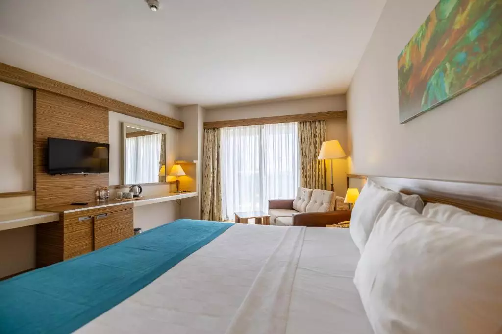 اتاقهای هتل با طراحی مدرن و رنگبندی روشن، مجهز به امکاناتی شامل اینترنت پرسرعت، تهویه مطبوع، تلویزیون LCD، مینیبار، صندوق امانات، سرویس بهداشتی مجهز و بالکن اختصاصی با چشمانداز به استخر یا دریا هستند. فضای داخلی اتاقها راحت و دلنشین است و برای استراحت مهمانان طراحی شده است.