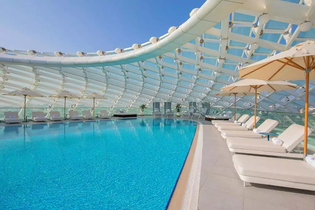 استخرهای روباز روی پشتبام با منظرهای تماشایی به جزیره یاس.