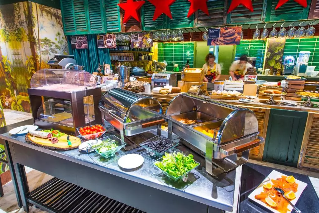 صبحانه بهصورت بوفه کامل شامل شیرینیهای تازه، نان، قهوه و انواع نوشیدنیهای گرم و سرد سرو میشود.