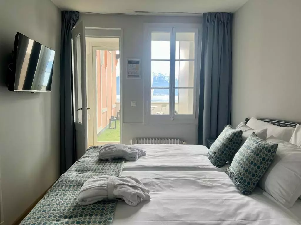 هتل دارای حدود ۱۰۰ اتاق است؛ انواع اتاقها شامل اتاق استاندارد، اتاق Deluxe، و Junior Suite هستند. همهٔ اتاقها دارای اینترنت وایفای، دید به دریاچه یا دید شهری، سرویس کامل حمام و امکانات رفاهی مدرن میباشند. فضای داخلی اتاقها دارای مبلمان راحت و کلاسیک است؛ برخی اتاقها تراس یا بالکن دارند تا مهمانان بتوانند از منظرهٔ دریاچه و کوهها لذت ببرند.