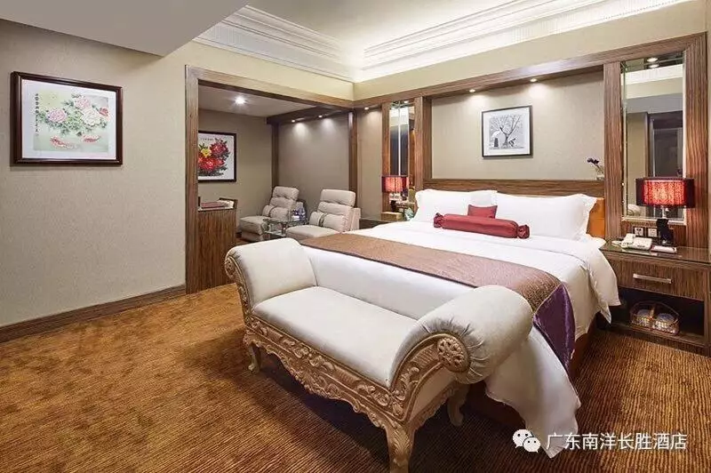 هتل دارای بیش از ۴۰۰ اتاق و سوئیت با طراحی کلاسیک اروپایی است. همه اتاقها مجهز به اینترنت پرسرعت، تهویه مطبوع، میز کار، مینیبار، تلویزیون صفحه تخت، حمام مجهز با سنگ مرمر و لوازم بهداشتی لوکس هستند. سوئیتهای ویژه با فضای بزرگتر و امکانات VIP برای مهمانان خاص طراحی شدهاند. پنجرههای بزرگ و نورگیر در بیشتر اتاقها، چشماندازی زیبا از شهر گوانجو ارائه میدهد.