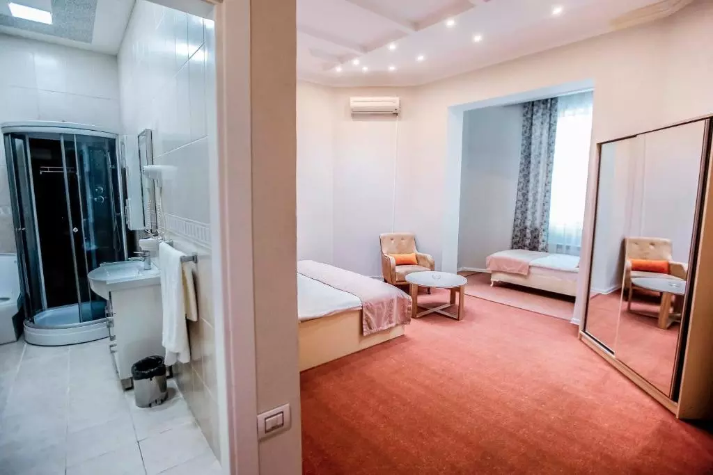 حمام خصوصی با دوش، حوله و لوازم بهداشتی
