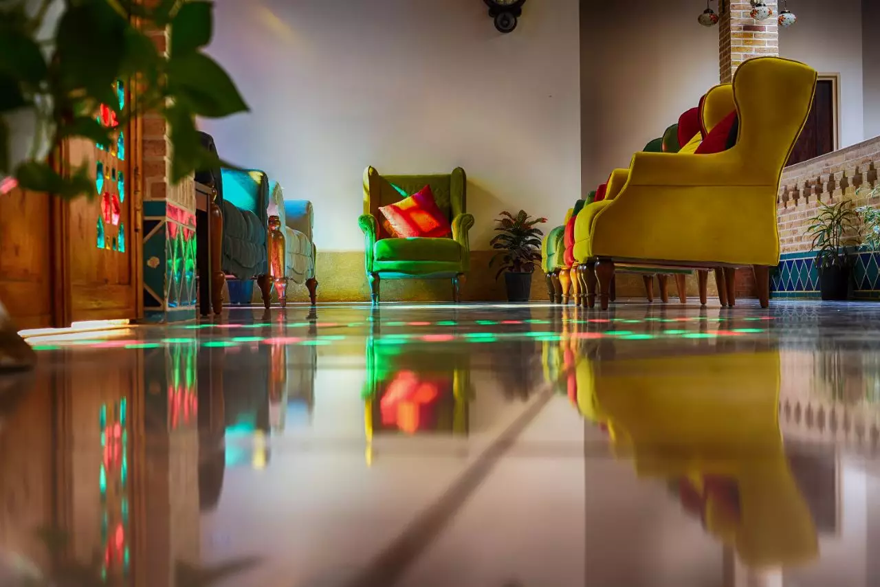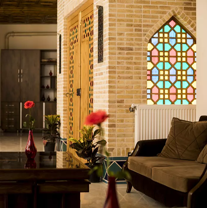 طراحی سنتی با مبلمان کلاسیک و شیشههای رنگی